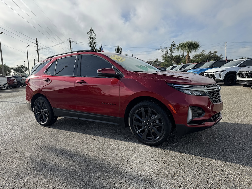 The price does not include tax, tag, license, an electronic filing fee of $449.00**, a private tag agency fee of $199.00**, and a predelivery service charge of $1199.00** **This charge represents costs and profit to the dealer for items such as inspecting, cleaning, and adjusting vehicles, as well as preparing documents related to the sale. * EPA-estimate metric: these are contingent on ideal conditions within a lab. Real-world situations such as carrying passengers or cargo, using climate control, driving style, and ambient temperatures can affect actual metrics. CALL OR TEXT 941-451-5422 NOW FOR PROFESSIONAL SALES ASSISTANCE! 26/31 City/Highway MPG 120-Volt Power Outlet, 2 USB Data Ports, 2 USB Data Ports w/SD Card Reader, Adaptive Cruise Control, Advanced Safety Package, Bose Premium 7-Speaker Audio System Feature, Driver Seatback Map Pocket, HD Surround Vision, Heated Steering Wheel, Infotainment Package, Outside Heated Power Adjustable Mirrors, Perforated Leather-Appointed Seat Trim, Preferred Equipment Group 1RS, Radio: Chevrolet Infotainment 3 Plus System w/Navi, RS Leather Package. Certified. Cherry Red Tintcoat 2022 Chevrolet Equinox RS FWD 6-Speed Automatic Electronic with Overdrive 1.5L DOHC