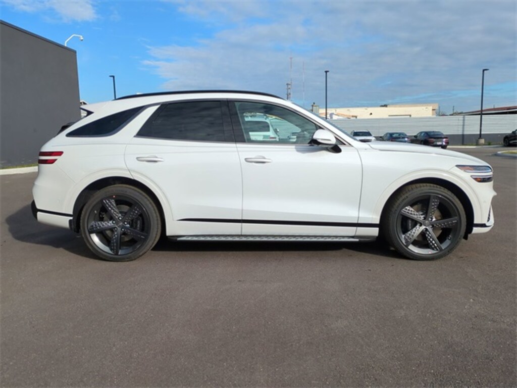 This vehicle comes equipped with Sport Appearance, Sport Prestige Package (12.3" 3D Digital Instrument Cluster, 2nd Row 110V AC Power Outlet, 3-Zone Climate Control, 4-Way Power Lumbar Front Passenger Seat, Adjustable Interior Ambient Lighting, Advanced Rear Occupant Alert, Alloy Pedals, Aluminum Trim w/Haptic Carbon Pattern, Blind-Spot View Monitor, Ergo Motion Seat, Forward Attention Warning, Forward/Reverse Parking Distance Warning, Genesis Digital Key, Heated Steering Wheel, Integrated Memory System (IMS), Leather Seating Surfaces w/Mesh Insert, Leatherette Wrapped Upper Instrument Panel, Lexicon Premium Audio, Manual Rear Door Shades, Passenger Walk-In Device, Power Driver Seat Bolster & Cushion Extension, Power Folding ECM Mirrors w/Genesis Logo Lamp, Power Telescoping Steering Wheel, Power Tilt & Slide Panoramic Sunroof, Remote Smart Parking Assist, Reverse Parking Collision-Avoidance Assist, Surround View Monitor, Ventilated Front Seats, and Wheels: 21" Dark Sputtering Sport Alloy), Genesis Certified Certified, 4-Wheel Disc Brakes, 9 Speakers, ABS brakes, Air Conditioning, Alloy wheels, Aluminum Trim w/Spin Brushed Pattern, AM/FM radio: SiriusXM, Android Auto & Apple CarPlay, Anti-whiplash front head restraints, Auto High-beam Headlights, Auto-dimming Rear-View mirror, Automatic temperature control, Brake assist, Bumpers: body-color, Cargo Mat, Delay-off headlights, Driver door bin, Driver vanity mirror, Dual front impact airbags, Dual front side impact airbags, Electronic Stability Control, Emergency communication system: Genesis Connected Services, Exterior Parking Camera Rear, First Aid Kit, Four wheel independent suspension, Front anti-roll bar, Front Bucket Seats, Front Center Armrest w/Storage, Front dual zone A/C, Front reading lights, Fully automatic headlights, Garage door transmitter: HomeLink, Heated door mirrors, Heated Front Bucket Seats, Heated front seats, Illuminated entry, Knee airbag, Leather Seating Surfaces, Leather steering wheel, Leatherette Seating Surfaces, Low tire pressure warning, Navigation System, Occupant sensing airbag, Outside temperature display, Overhead airbag, Overhead console, Panic alarm, Passenger door bin, Passenger vanity mirror, Power door mirrors, Power driver seat, Power Liftgate, Power passenger seat, Power steering, Power windows, Radio: 14.5" Navigation System w/AM/FM/HD Radio, Rain sensing wipers, Rear anti-roll bar, Rear Parking Sensors, Rear reading lights, Rear seat center armrest, Rear window defroster, Rear window wiper, Remote keyless entry, Security system, Side Steps, Speed control, Speed-sensing steering, Speed-Sensitive Wipers, Split folding rear seat, Spoiler, Steering wheel mounted audio controls, Tachometer, Telescoping steering wheel, Traction control, Trip computer, Turn signal indicator mirrors, Variably intermittent wipers, Wave Line Backlit Trim, and Wheels: 19" Dark Hyper Silver Alloy .