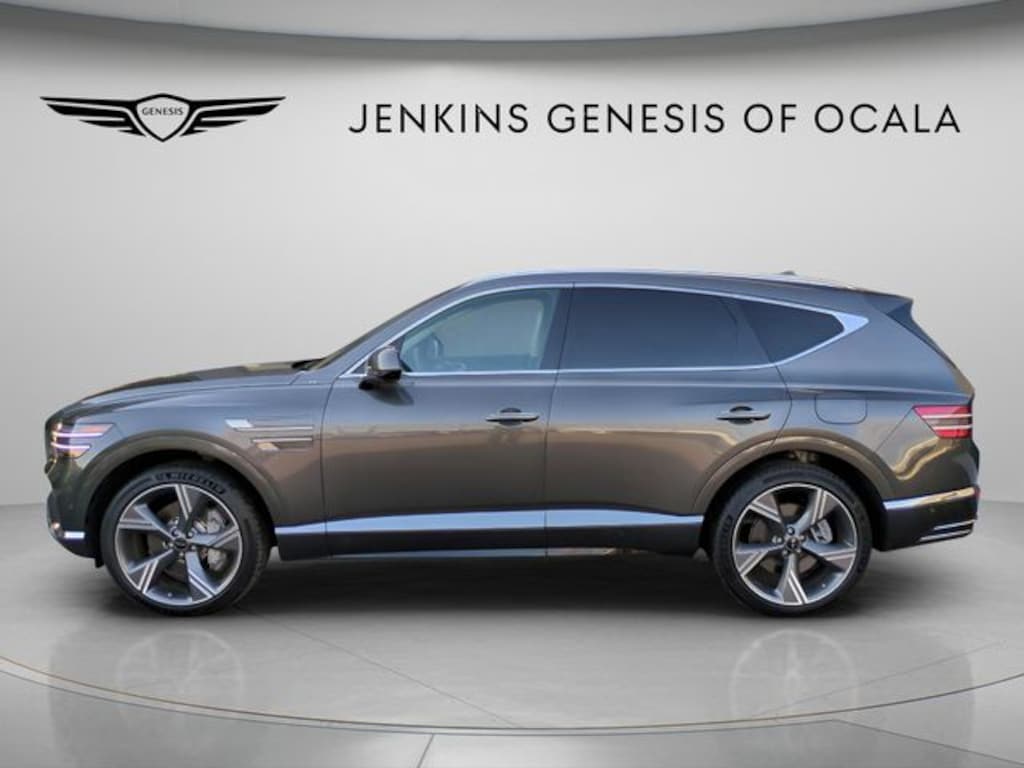 This vehicle comes equipped with Option Group 01, Genesis Certified, 18 Speakers, 4-Wheel Disc Brakes, ABS brakes, Adaptive suspension, Air Conditioning, Alloy wheels, AM/FM radio: SiriusXM, Anti-whiplash front head restraints, Auto High-beam Headlights, Auto tilt-away steering wheel, Auto-dimming door mirrors, Auto-dimming Rear-View mirror, Automatic temperature control, Brake assist, Bumpers: body-color, Cargo Net, Compass, Delay-off headlights, Driver door bin, Driver vanity mirror, Dual front impact airbags, Dual front side impact airbags, Electronic Stability Control, Emergency communication system: Genesis Connected Services, Exterior Parking Camera Rear, Four wheel independent suspension, Fragrance Cartridge, Front anti-roll bar, Front Bucket Seats, Front Center Armrest, Front dual zone A/C, Front reading lights, Fully automatic headlights, Garage door transmitter: HomeLink, Genuine wood console insert, Genuine wood dashboard insert, Genuine wood door panel insert, Heads-Up Display, Heated & Ventilated Front Bucket Seats, Heated door mirrors, Heated front seats, Heated rear seats, Heated steering wheel, Illuminated entry, Knee airbag, Leather Seating Surfaces, Leather steering wheel, Low tire pressure warning, Memory seat, Navigation System, Occupant sensing airbag, Outside temperature display, Overhead airbag, Overhead console, Panic alarm, Passenger door bin, Passenger vanity mirror, Power door mirrors, Power driver seat, Power Liftgate, Power moonroof, Power passenger seat, Power steering, Power windows, Radio data system, Radio: AM/FM/SiriusXM/HD Bang & Olufsen Sound Sys, Rain sensing wipers, Rear air conditioning, Rear anti-roll bar, Rear reading lights, Rear seat center armrest, Rear side impact airbag, Rear window defroster, Rear window wiper, Remote keyless entry, Security system, Speed control, Speed-sensing steering, Speed-Sensitive Wipers, Split folding rear seat, Spoiler, Steering wheel memory, Steering wheel mounted audio controls, Tachometer, Telescoping steering wheel, Tilt steering wheel, Traction control, Trip computer, Turn signal indicator mirrors, Variably intermittent wipers, Ventilated front seats, Wheel Locks, and Wheels: 22" x 9.5J Dark Gray Matte Alloy .