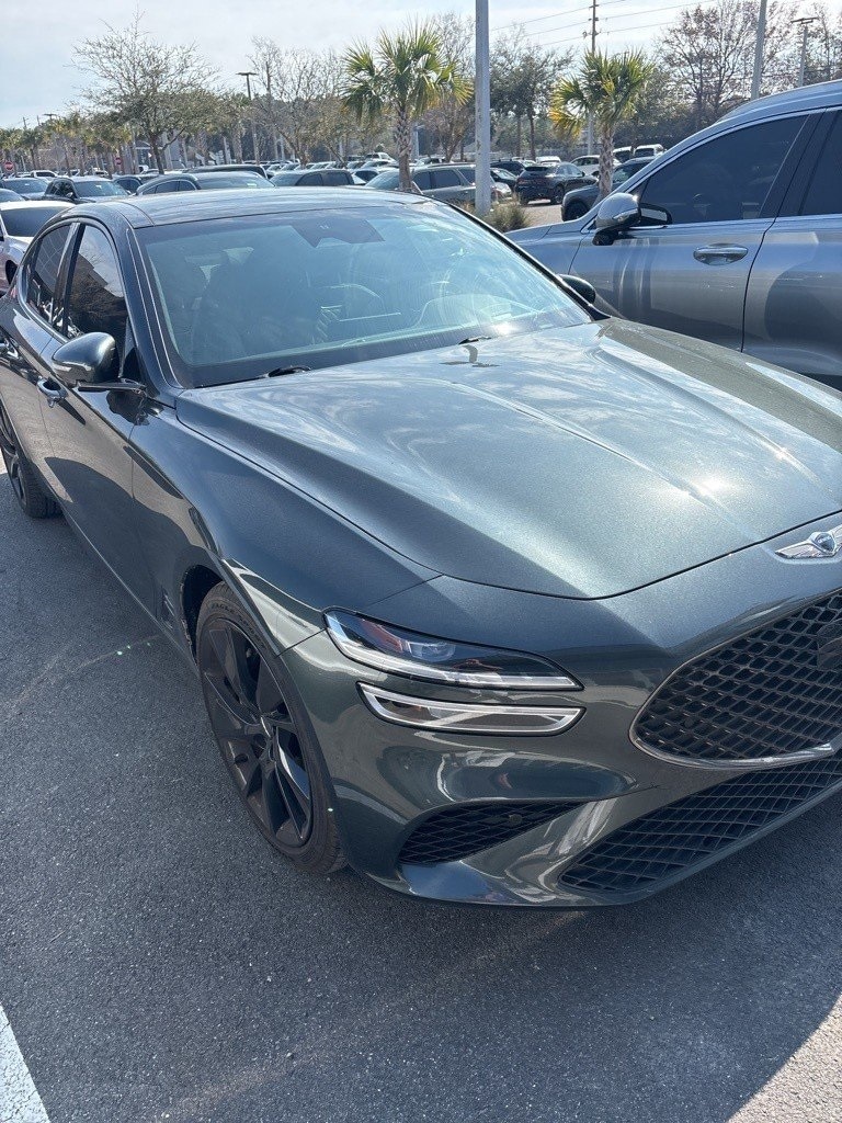 Mileage: 34,471 miles miles, MPG Range: 18/ mpg, Engine: 3.3L V-6, Transmission: 8-Speed Automatic, Drive Line: RWD, Exterior Color: Black Forest Green, Interior Color: Gray,Stock #: 313SVJG9422A, Comments: The price does not include tax, tag, license, an electronic filing fee of $449.00**, a private tag agency fee of $199.00**, and a predelivery service charge of $1199.00** **This charge represents costs and profit to the dealer for items such as inspecting, cleaning, and adjusting vehicles, as well as preparing documents related to the sale. * EPA-estimate metric: these are contingent on ideal conditions within a lab. Real-world situations such as carrying passengers or cargo, using climate control, driving style, and ambient temperatures can affect actual metrics. 18/27 City/Highway MPG Black Forest Green 2022 Genesis G70 3.3T RWD 8-Speed Automatic V6