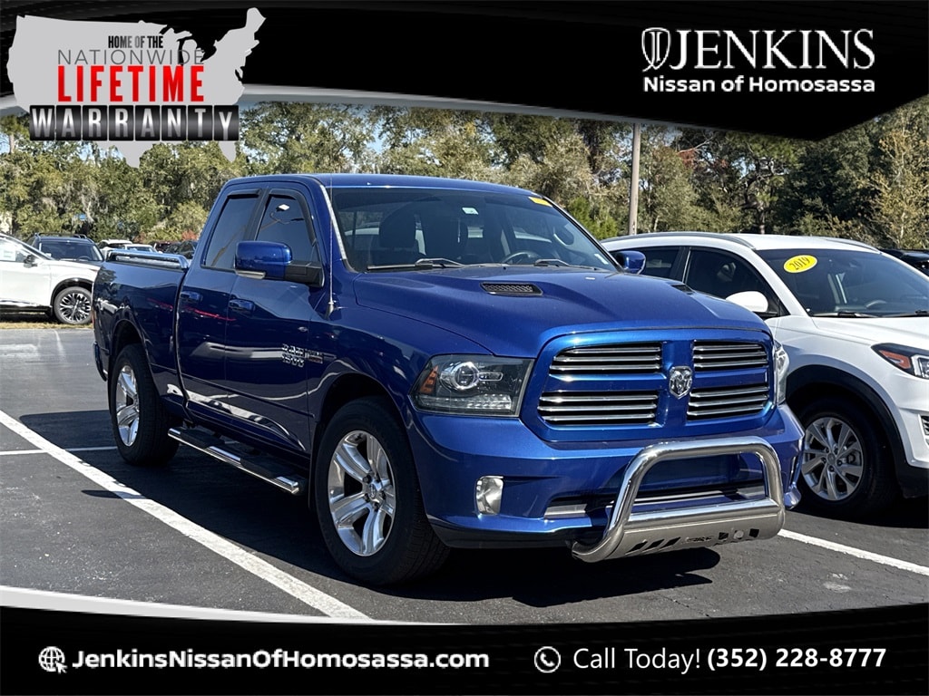 Blue Streak Pearlcoat Odometer is 66962 miles below market average! 2016 Ram 1500 Sport RWD 8-Speed Automatic HEMI 5.7L V8 Multi Displacement VVT Jenkins has been doing business for over 50 years and we appreciate your business! Our used cars undergo an extensive Detail and Reconditioning Process, and are thoroughly inspected to meet the criteria for our exclusive warranty. Buy with confidence at Jenkins Nissan of Homosassa! We spend an average of $2779 in Detail and Reconditioning on every used car. The Reconditioning and Maintenance Repair History is Available Upon Request. We don't just inspect, we fix :)