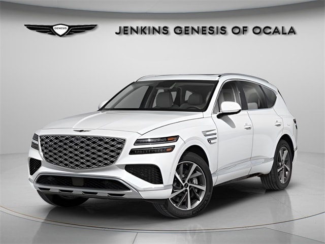 This vehicle comes equipped with Option Group 01, 18 Speakers, 3rd row seats: split-bench, 4-Wheel Disc Brakes, ABS brakes, Adaptive suspension, Air Conditioning, Alloy wheels, AM/FM radio: SiriusXM, Anti-whiplash front head restraints, Auto High-beam Headlights, Auto tilt-away steering wheel, Auto-dimming door mirrors, Auto-dimming Rear-View mirror, Automatic temperature control, Brake assist, Bumper Applique, Bumpers: body-color, Cargo Net, Compass, Delay-off headlights, Driver door bin, Driver vanity mirror, Dual front impact airbags, Dual front side impact airbags, Electronic Stability Control, Emergency communication system: Genesis Connected Services, Exterior Parking Camera Rear, First Aid Kit, Four wheel independent suspension, Front anti-roll bar, Front Bucket Seats, Front Center Armrest, Front dual zone A/C, Front reading lights, Fully automatic headlights, Garage door transmitter: HomeLink, Genuine wood console insert, Genuine wood dashboard insert, Genuine wood door panel insert, Heads-Up Display, Heated and Ventilated Front Bucket Seats, Heated door mirrors, Heated front seats, Heated rear seats, Heated steering wheel, Illuminated entry, Knee airbag, Leather Seating Surfaces, Leather steering wheel, Low tire pressure warning, Memory seat, Navigation System, NFC Key Card, Occupant sensing airbag, Outside temperature display, Overhead airbag, Overhead console, Panic alarm, Passenger door bin, Passenger vanity mirror, Power door mirrors, Power driver seat, Power Liftgate, Power moonroof, Power passenger seat, Power steering, Power windows, Radio data system, Radio: AM/FM/HD Bose Premium Sound System, Rain sensing wipers, Rear air conditioning, Rear anti-roll bar, Rear dual zone A/C, Rear reading lights, Rear seat center armrest, Rear side impact airbag, Rear window defroster, Rear window wiper, Reclining 3rd row seat, Remote keyless entry, Security system, Speed control, Speed-sensing steering, Speed-Sensitive Wipers, Split folding rear seat, Spoiler, Steering wheel memory, Steering wheel mounted audio controls, Tachometer, Telescoping steering wheel, Tilt steering wheel, Traction control, Trip computer, Turn signal indicator mirrors, Variably intermittent wipers, Ventilated front seats, and Wheels: 20" x 8.5J Dark Gray Matte Alloy .