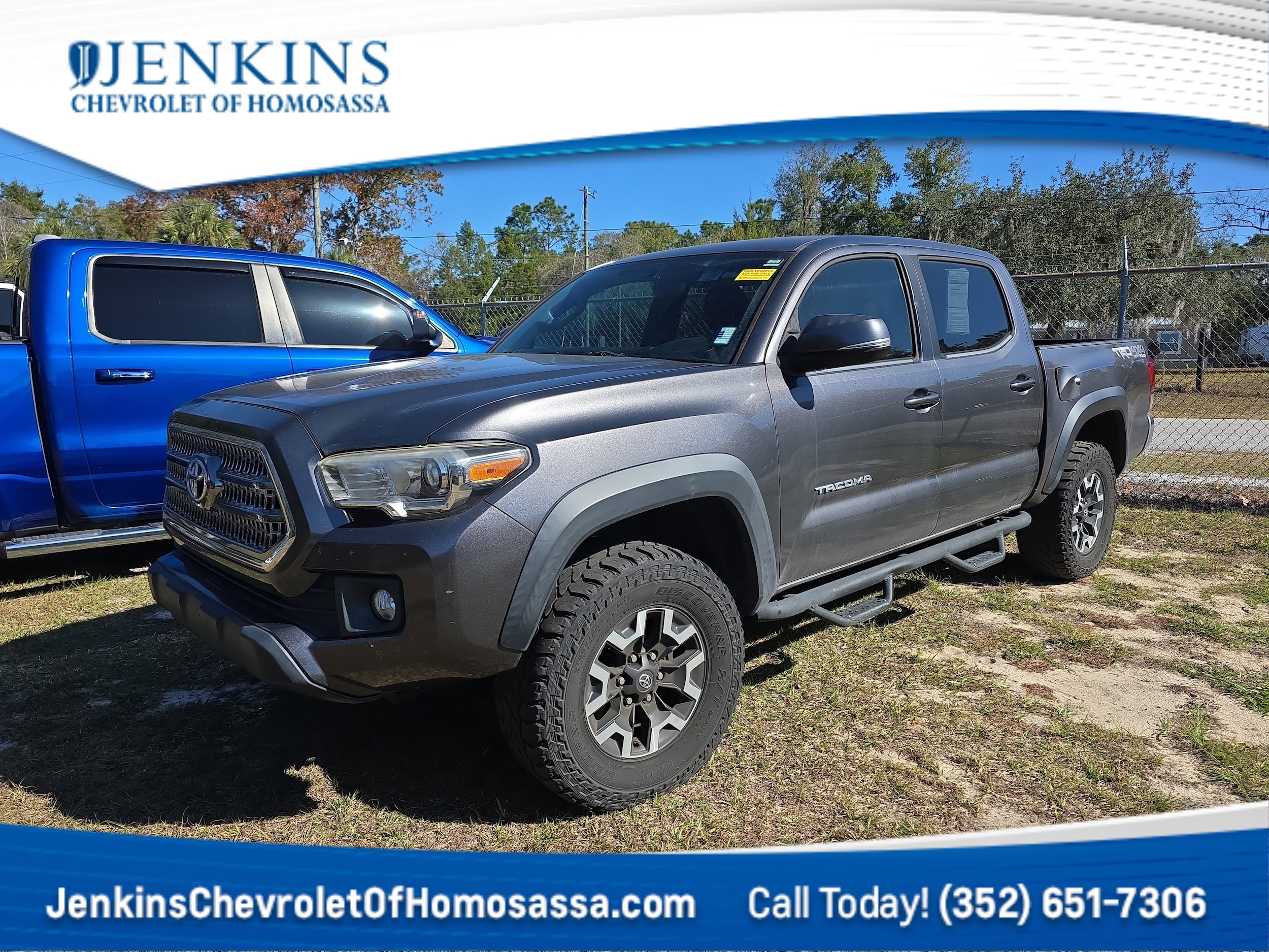 Mileage: 127,784 miles miles, MPG Range: 18/ mpg, Engine: 3.5L V-6, Transmission: Automatic, Drive Line: Other, Exterior Color: Gray, Interior Color: Graphite,Stock #: 16D2269A, Comments: This vehicle comes equipped with 4WD, ABS brakes, Air Conditioning, Alloy wheels, Compass, Electronic Stability Control, Illuminated entry, Low tire pressure warning, Remote keyless entry, Traction control, 120V/400W Deck Mounted AC Power, 6 Speakers, AM/FM radio: SiriusXM, Anti-whiplash front head restraints, Auto-Dimming Inside Rear-View Mirror w/Compass, Auto-dimming Rear-View mirror, Axle Ratio: 3.91, Brake assist, Bumpers: body-color, CD player, Cruise Control, Driver door bin, Dual front impact airbags, Dual front side impact airbags, Engine Immobilizer, Exterior Parking Camera Rear, Fabric Seat Trim (FD), Front anti-roll bar, Front Bucket Seats, Front Center Armrest, Front fog lights, Front reading lights, Front wheel independent suspension, Knee airbag, Leather Shift Knob, LED Daytime Running Lights, Occupant sensing airbag, ORP Black Overfenders, Outside temperature display, Overhead airbag, Overhead console, Panic alarm, Passenger door bin, Power door mirrors, Power Sliding Rear Window w/Privacy Glass, Power steering, Power windows, Radio: Entune Premium w/AM/FM/CD/Nav/App Suite, Rear step bumper, Remote Keyless Entry System, Security system, Smart Key w/Push Button Start, Speed control, Speed-sensing steering, Split folding rear seat, Steering wheel mounted audio controls, Tachometer, Telescoping steering wheel, Tilt steering wheel, TRD-Tuned Off-Road Suspension, Trip computer, Turn signal indicator mirrors, Variable Intermittent Wipers, Variably intermittent wipers, Wheels: 16" x 7" Machined Contrast Alloy, and Wide Angle Front Fog Lamps . Jenkins Chevrolet of Homosassa proudly serving Homosassa, Spring Hill, Hernando, Crystal River, Beverly Hills, Inverness. Just a half hour North of Buccaneer Bay. Come see the large, expansive inventory of the Jenkins Auto Group. 18/23 City/Highway MPG 4WD, ABS brakes, Air Conditioning, Alloy wheels, Compass, Electronic Stability Control, Illuminated entry, Low tire pressure warning, Remote keyless entry, Traction control. Clean CARFAX. Gray 2017 Toyota Tacoma TRD Off-Road 4WD 6-Speed Automatic V6