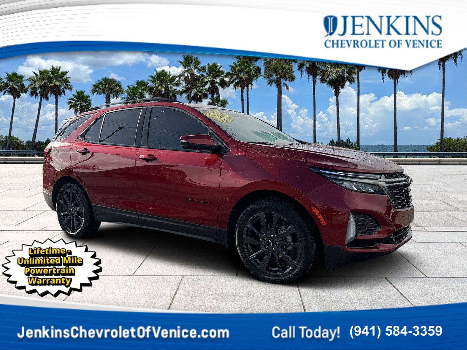 Mileage: 45,815 miles miles, MPG Range: 26/31 mpg, Engine: 1.5L i-4, Transmission: Automatic, Drive Line: FWD, Exterior Color: Cherry Red Tintcoat, Interior Color: Jet Black,Stock #: 14G7628B, Comments: The price does not include tax, tag, license, an electronic filing fee of $449.00**, a private tag agency fee of $199.00**, and a predelivery service charge of $1199.00** **This charge represents costs and profit to the dealer for items such as inspecting, cleaning, and adjusting vehicles, as well as preparing documents related to the sale. * EPA-estimate metric: these are contingent on ideal conditions within a lab. Real-world situations such as carrying passengers or cargo, using climate control, driving style, and ambient temperatures can affect actual metrics. CALL OR TEXT 941-451-5422 NOW FOR PROFESSIONAL SALES ASSISTANCE! 26/31 City/Highway MPG 120-Volt Power Outlet, 2 USB Data Ports, 2 USB Data Ports w/SD Card Reader, Adaptive Cruise Control, Advanced Safety Package, Bose Premium 7-Speaker Audio System Feature, Driver Seatback Map Pocket, HD Surround Vision, Heated Steering Wheel, Infotainment Package, Outside Heated Power Adjustable Mirrors, Perforated Leather-Appointed Seat Trim, Preferred Equipment Group 1RS, Radio: Chevrolet Infotainment 3 Plus System w/Navi, RS Leather Package. Certified. Cherry Red Tintcoat 2022 Chevrolet Equinox RS FWD 6-Speed Automatic Electronic with Overdrive 1.5L DOHC