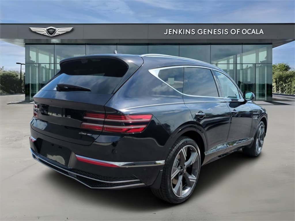 This vehicle comes equipped with Option Group 01, 18 Speakers, 3rd row seats: split-bench, 4-Wheel Disc Brakes, ABS brakes, Adaptive suspension, Air Conditioning, Alloy wheels, AM/FM radio: SiriusXM, Anti-whiplash front head restraints, Auto High-beam Headlights, Auto tilt-away steering wheel, Auto-dimming door mirrors, Auto-dimming Rear-View mirror, Automatic temperature control, Brake assist, Bumpers: body-color, Cargo Net, Compass, Delay-off headlights, Driver door bin, Driver vanity mirror, Dual front impact airbags, Dual front side impact airbags, Electronic Stability Control, Emergency communication system: Genesis Connected Services, Exterior Parking Camera Rear, First Aid Kit, Four wheel independent suspension, Fragrance Cartridge, Front anti-roll bar, Front Bucket Seats, Front Center Armrest, Front dual zone A/C, Front reading lights, Fully automatic headlights, Garage door transmitter: HomeLink, Genuine wood console insert, Genuine wood dashboard insert, Genuine wood door panel insert, Heads-Up Display, Heated & Ventilated Front Bucket Seats, Heated door mirrors, Heated front seats, Heated rear seats, Heated steering wheel, Illuminated entry, Knee airbag, Leather steering wheel, Low tire pressure warning, Memory seat, Nappa Leather Seating Surfaces, Navigation System, NFC Key Card, Occupant sensing airbag, Outside temperature display, Overhead airbag, Overhead console, Panic alarm, Passenger door bin, Passenger vanity mirror, Power door mirrors, Power driver seat, Power Liftgate, Power moonroof, Power passenger seat, Power steering, Power windows, Radio data system, Radio: AM/FM/SiriusXM/HD Bang & Olufsen Sound Sys, Rain sensing wipers, Rear air conditioning, Rear anti-roll bar, Rear dual zone A/C, Rear reading lights, Rear seat center armrest, Rear side impact airbag, Rear window defroster, Rear window wiper, Reclining 3rd row seat, Remote keyless entry, Security system, Speed control, Speed-sensing steering, Speed-Sensitive Wipers, Split folding rear seat, Spoiler, Steering wheel memory, Steering wheel mounted audio controls, Tachometer, Telescoping steering wheel, Tilt steering wheel, Traction control, Trip computer, Turn signal indicator mirrors, Variably intermittent wipers, Ventilated front seats, Ventilated rear seats, and Wheels: 22" x 9.5J Dark Gray Matte Alloy .