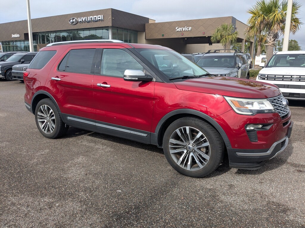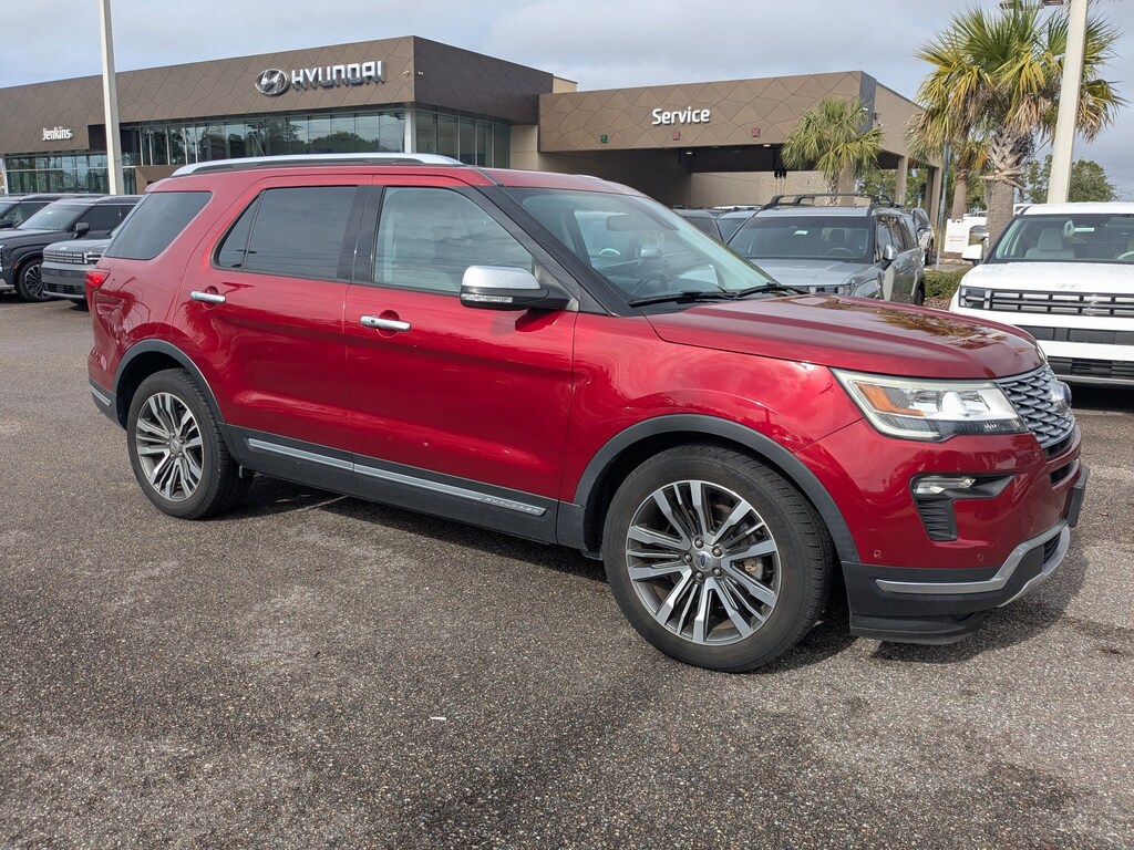 The price does not include tax, tag, license, an electronic filing fee of $449.00**, a private tag agency fee of $199.00**, and a predelivery service charge of $1199.00** **This charge represents costs and profit to the dealer for items such as inspecting, cleaning, and adjusting vehicles, as well as preparing documents related to the sale. * EPA-estimate metric: these are contingent on ideal conditions within a lab. Real-world situations such as carrying passengers or cargo, using climate control, driving style, and ambient temperatures can affect actual metrics. 16/22 City/Highway MPG This 2019 Ford Explorer Platinum in Ruby Red Metallic features Equipment Group 600A, 12 Speakers, 2nd Row Bucket Seats w/Power-Assist Fold, 3.16 Non-Limited Slip Axle Ratio, 3rd row seats: split-bench, 4-Wheel Disc Brakes, ABS brakes, Adjustable pedals, Air Conditioning, Alloy wheels, AM/FM radio: SiriusXM, AppLink/Apple CarPlay and Android Auto, Auto High-beam Headlights, Auto tilt-away steering wheel, Auto-dimming door mirrors, Auto-dimming Rear-View mirror, Automatic temperature control, Brake assist, Bumpers: body-color, Compass, Delay-off headlights, Driver door bin, Driver vanity mirror, Dual front impact airbags, Dual front side impact airbags, Electronic Stability Control, Emergency communication system: 911 Assist, Exterior Parking Camera Rear, Four wheel independent suspension, Front anti-roll bar, Front Bucket Seats, Front Center Armrest, Front dual zone A/C, Front fog lights, Front reading lights, Fully automatic headlights, Garage door transmitter, Genuine wood dashboard insert, Genuine wood door panel insert, Heated door mirrors, Heated front seats, Heated rear seats, Heated steering wheel, Illuminated entry, Knee airbag, Lane Departure Warning System, Leather steering wheel, Low tire pressure warning, Memory seat, Navigation System, Nirvana Multi Contour Leather Cooled Bucket Seats, Occupant sensing airbag, Outside temperature display, Overhead airbag, Overhead console, Panic alarm, Passenger door bin, Passenger vanity mirror, Pedal memory, Power door mirrors, Power driver seat, Power Liftgate, Power moonroof, Power passenger seat, Power steering, Power windows, Premium audio system: Sony, Radio data system, Radio: Premium Sound from Sony, Rain sensing wipers, Rear air conditioning, Rear anti-roll bar, Rear reading lights, Rear seat center armrest, Rear window defroster, Rear window wiper, Remote keyless entry, Roof rack: rails only, Security system, Speed control, Speed-sensing steering, Speed-Sensitive Wipers, Split folding rear seat, Spoiler, Steering wheel memory, Steering wheel mounted audio controls, SYNC 3 Communications & Entertainment System, Tachometer, Telescoping steering wheel, Tilt steering wheel, Traction control, Trip computer, Turn signal indicator mirrors, Variably intermittent wipers, Ventilated front seats, and Wheels: 20" Bright Machined Face Aluminum . Visit our showroom 24/7 at Jenkinshyundaiofjacksonville or call 904-420-3100. 4WD