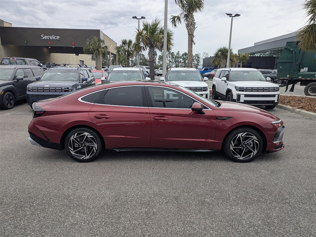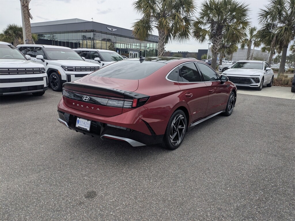 The price does not include tax, tag, license, an electronic filing fee of $449.00**, a private tag agency fee of $199.00**, and a predelivery service charge of $1199.00** **This charge represents costs and profit to the dealer for items such as inspecting, cleaning, and adjusting vehicles, as well as preparing documents related to the sale. * EPA-estimate metric: these are contingent on ideal conditions within a lab. Real-world situations such as carrying passengers or cargo, using climate control, driving style, and ambient temperatures can affect actual metrics. 25/36 City/Highway MPG CARFAX One-Owner. This 2024 Hyundai Sonata SEL in Ultimate red features Convenience Package (12.3" LCD Instrument Cluster, 18" x 7.5J Aluminum Alloy Wheels, Auto-Dimming Mirror, Hyundai Digital Key 2.0 Premium, Leather-Wrapped Steering Wheel, LED Interior Lights, Option Group 02, Panoramic Sunroof, Radio: AM/FM/HD/SiriusXM/Navigation, and Wireless Device Charging), 17" x 7.0J Aluminum Alloy Wheels, 4-Wheel Disc Brakes, 6 Speakers, ABS brakes, Air Conditioning, Alloy wheels, AM/FM radio: SiriusXM, Apple CarPlay & Android Auto, Auto High-beam Headlights, Automatic temperature control, Brake assist, Bumpers: body-color, Carpeted Floor Mats, Delay-off headlights, Driver door bin, Driver vanity mirror, Dual front impact airbags, Dual front side impact airbags, Electronic Stability Control, Emergency communication system: Bluelink, Exterior Parking Camera Rear, Four wheel independent suspension, Front anti-roll bar, Front Bucket Seats, Front Center Armrest, Front dual zone A/C, Front reading lights, Fully automatic headlights, Heated door mirrors, Heated Front Bucket Seats, Heated front seats, Illuminated entry, Knee airbag, Low tire pressure warning, Occupant sensing airbag, Outside temperature display, Overhead airbag, Overhead console, Panic alarm, Passenger door bin, Passenger vanity mirror, Power door mirrors, Power driver seat, Power steering, Power windows, Premium Cloth Seating Surfaces, Radio data system, Radio: AM/FM/HD/SiriusXM, Rear anti-roll bar, Rear seat center armrest, Rear side impact airbag, Rear window defroster, Remote keyless entry, Security system, Speed control, Speed-sensing steering, Speed-Sensitive Wipers, Split folding rear seat, Steering wheel mounted audio controls, Tachometer, Telescoping steering wheel, Tilt steering wheel, Traction control, Trip computer, and Variably intermittent wipers . Visit our showroom 24/7 at Jenkinshyundaiofjacksonville or call 904-420-3100. FWD