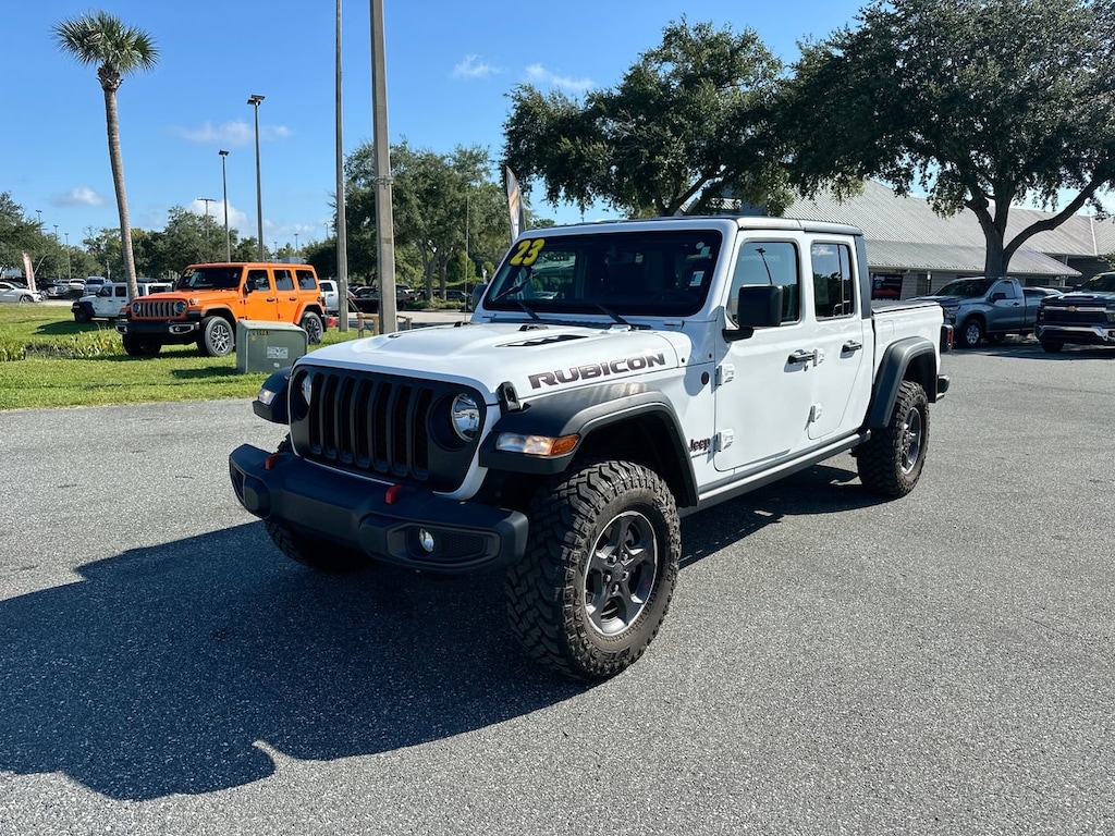 The price does not include tax, tag, license, an electronic filing fee of $449.00**, a private tag agency fee of $199.00**, and a predelivery service charge of $1199.00** **This charge represents costs and profit to the dealer for items such as inspecting, cleaning, and adjusting vehicles, as well as preparing documents related to the sale. * EPA-estimate metric: these are contingent on ideal conditions within a lab. Real-world situations such as carrying passengers or cargo, using climate control, driving style, and ambient temperatures can affect actual metrics. 17/22 City/Highway MPG Clean CARFAX. CARFAX One-Owner. Bright White Clearcoat 2023 Jeep Gladiator Rubicon 4WD 8-Speed Automatic 3.6L V6 24V VVT