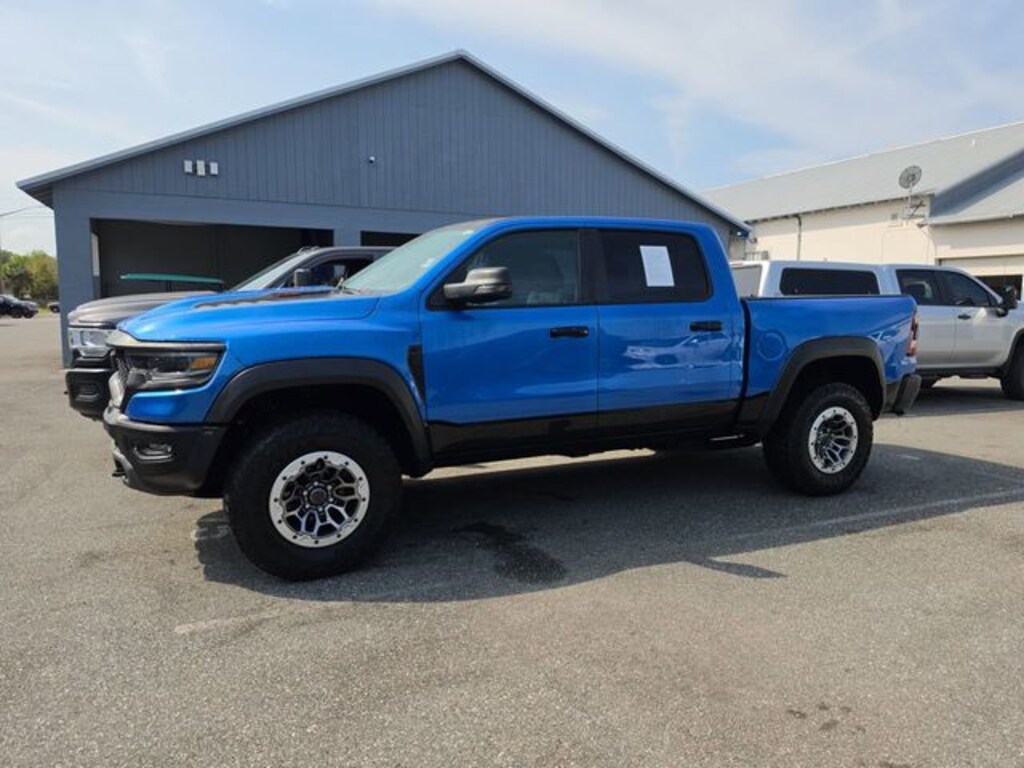 The price does not include tax, tag, license, an electronic filing fee of $449.00**, a private tag agency fee of $199.00**, and a predelivery service charge of $1199.00** **This charge represents costs and profit to the dealer for items such as inspecting, cleaning, and adjusting vehicles, as well as preparing documents related to the sale. * EPA-estimate metric: these are contingent on ideal conditions within a lab. Real-world situations such as carrying passengers or cargo, using climate control, driving style, and ambient temperatures can affect actual metrics. 10/14 City/Highway MPG NAVIGATION SYSTEM, ALLOY WHEELS, BACKUP CAMERA, BLUETOOTH, CLIMATE PACKAGE, HEAT PACKAGE, LEATHER SEATS, MEMORY PACKAGE, POWER PACKAGE, REMOTE START, TOW PACKAGE, SUNROOF/MOONROOF, TECHNOLOGY PACKAGE. CARFAX One-Owner. Clean CARFAX. Recent Arrival! Hydro Blue Pearlcoat 2023 Ram 1500 TRX Crew Cab Level 2 4WD 8-Speed Automatic 6.2L Supercharged HEMI V8 SRT